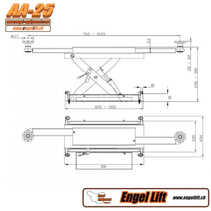 - Bras de levage: 766 -jusqu'à1626 mm.