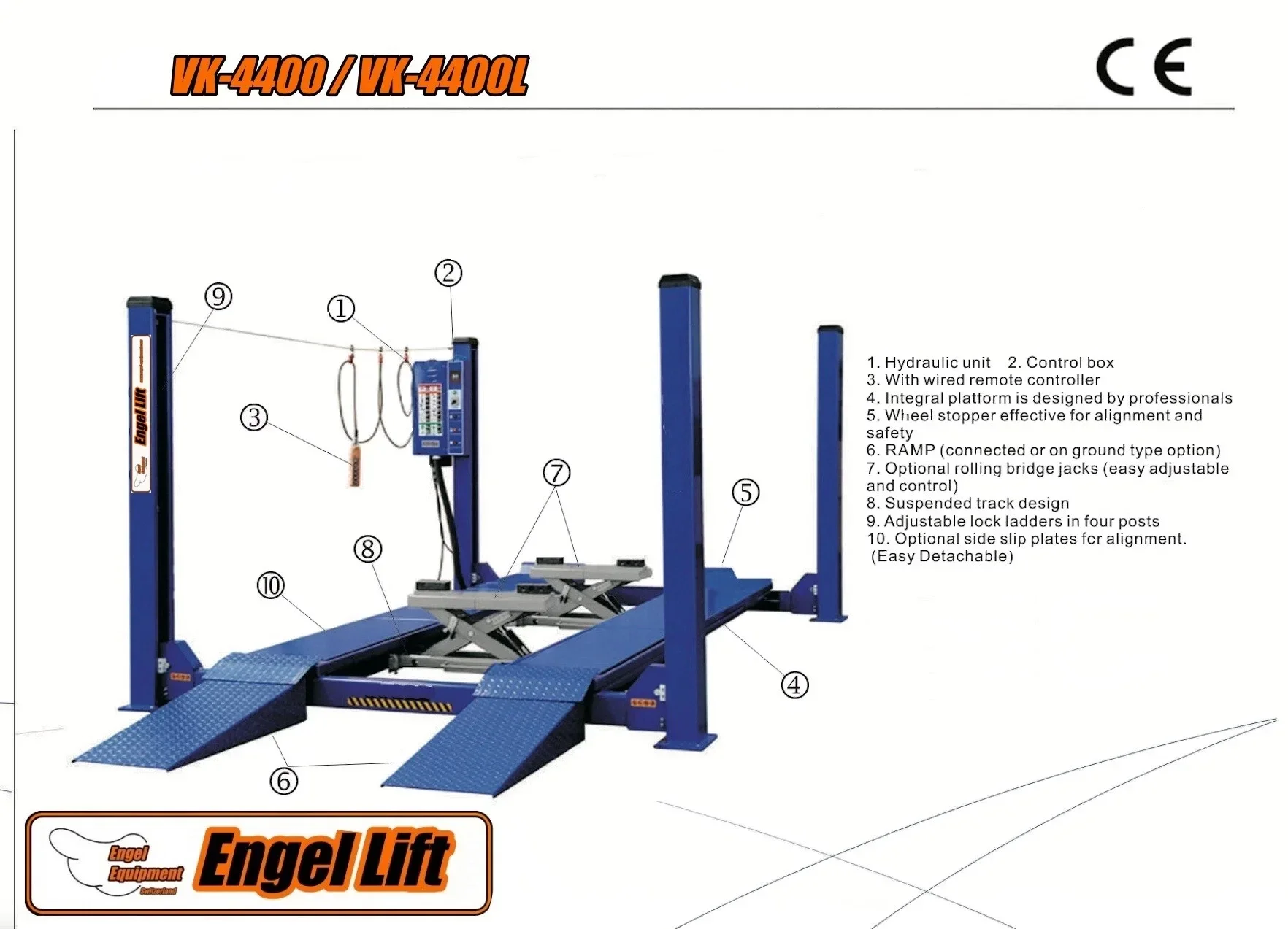 Engellift VK-5400N : Pont élévateur à 4 colonnes avec géométrie de direction (mesure de l'essieu) plate-forme.