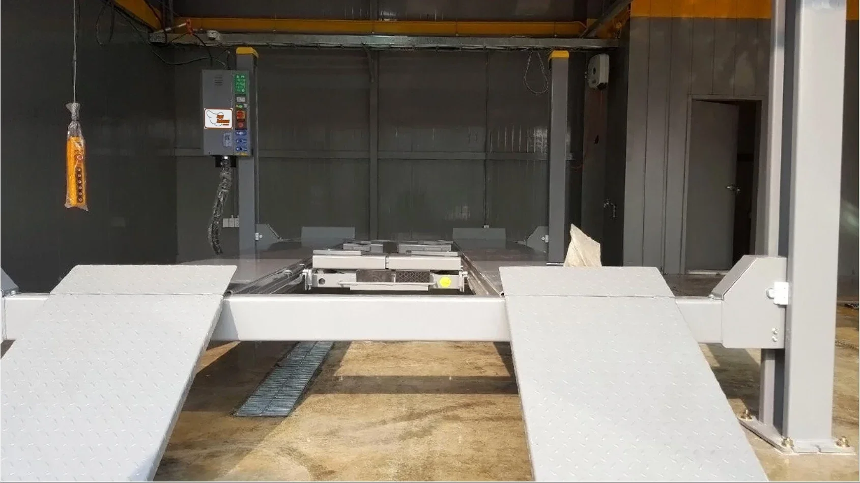Les ponts élévateurs VK-5400N sont équipés d'un cric et, si vous le souhaitez, d'un câble de commande à distance qui permet de lever ou d'abaisser le pont élévateur et le cric (génial pendant les travaux sur les véhicules), mais qui est aussi un accessoire, tout simplement le pont élévateur professionnel pour la géométrie de direction, mais fabriqué pour ce que l'on appelle "Narrow Bay".