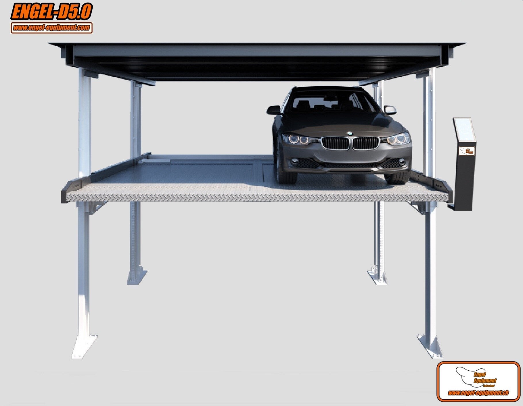 Le système de parking ENGEL-PP5-2M est une installation qui permet de doubler le nombre de places de parking en fonction de leur nombre, les installations sont entraînées par des moteurs électriques extra-silencieux.
