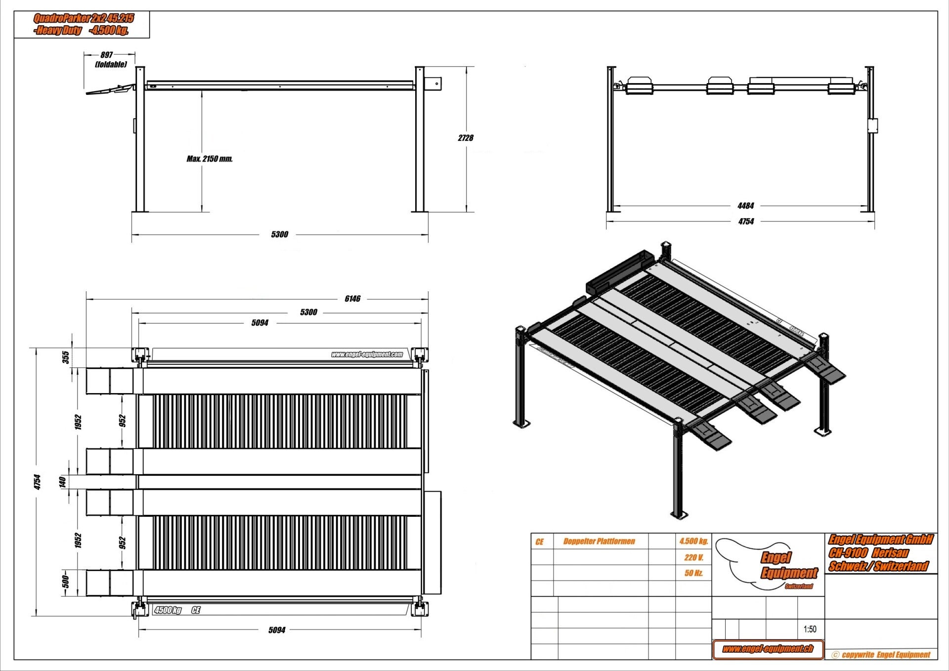 ENGEL-2130.2x2 / 5000 ; Plateforme de stationnement QuadroParker robuste à 4 montants (5000 kg.)