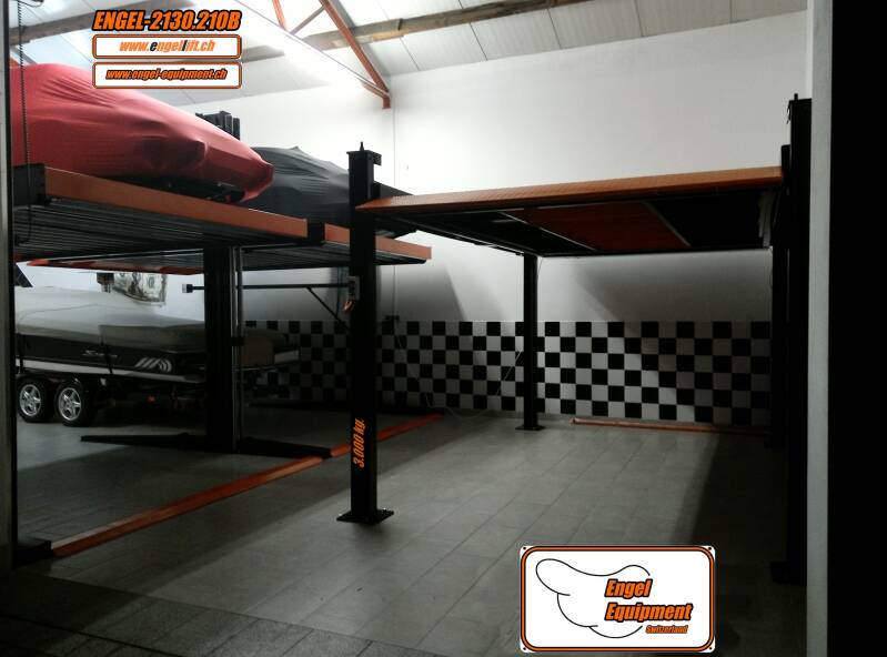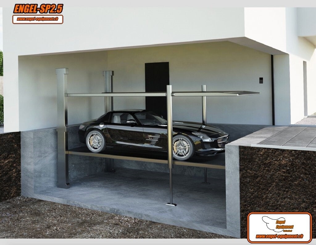 Il s'agit de l'un de nos ascenseurs de stationnement doubles à 4 colonnes, avec ce modèle, vous avez l'avantage de pouvoir conduire sous terre, donc spécialement développé pour l'installation en sous-sol, cette version est également disponible en tant que plate-forme de stationnement simple (ENGEL-SP2.5)