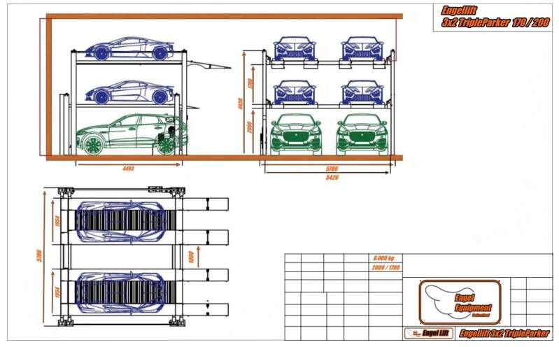 ENGELLift 3x2 TripleParker 210/210 ; Pont élévateur de parking triple à 4 colonnes (4x 2.000kg -& 2x illimité.)