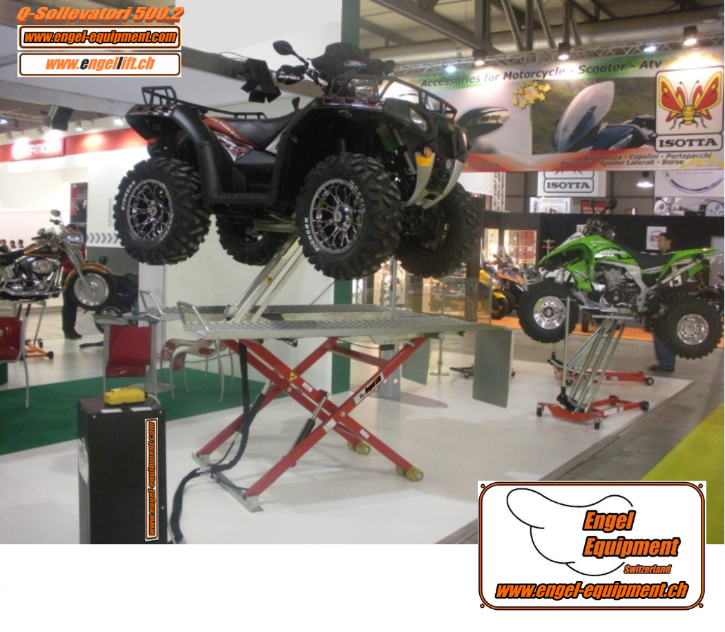 Engellift Q-Sollevatori 500 ; Ponts élévateurs à double ciseaux Quad ATV / UTV -& Side-by-side en deux versions.