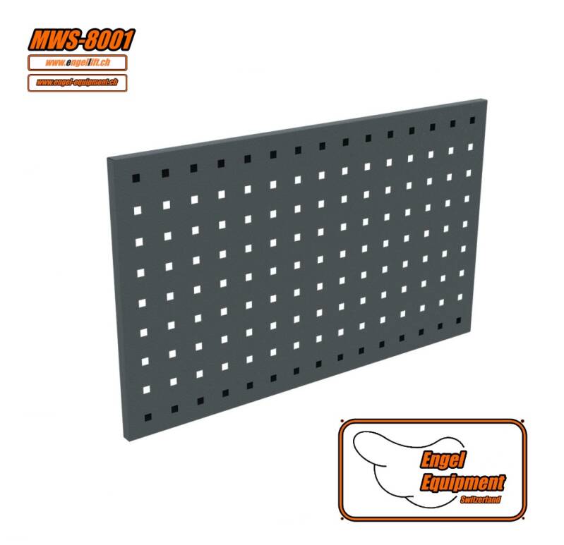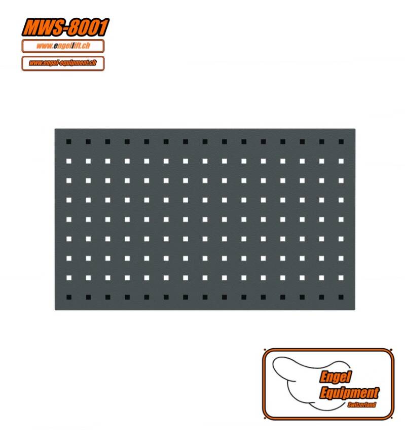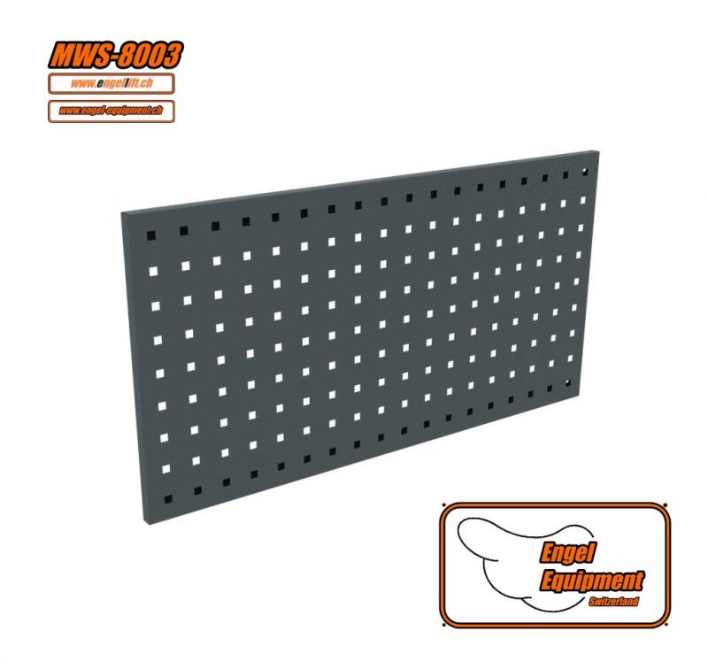 Cette paroi en tôle perforée est vissée entre les montants à l'endroit prévu, cette paroi en tôle perforée est utilisée avec le MWS-8051 (panneau électrique) ou le MWS-8052 (panneau à air comprimé), vous obtenez ainsi une liaison solide entre les armoires et les parois de l'installation combinée, vous pouvez la configurer entièrement selon vos besoins, les parois en tôle perforée peuvent être équipées à volonté de crochets et de supports, nous avons ici une très large gamme de crochets et de supports.