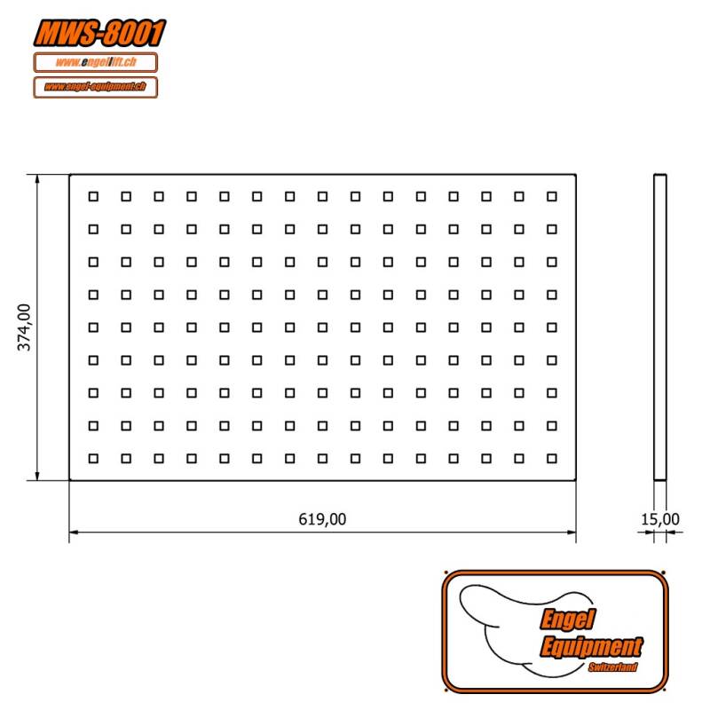 MWS-8001 ; Paroi en tôle perforée H.374 x L.619 x D.15mm